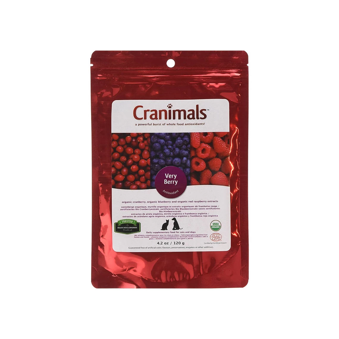 CRANIMALS Very Berry is made from certified organic blueberries, cranberries, and red raspberries, three of the world’s healthiest fruits. Scientific studies show that the polyphenols in these berries support a healthy inflammatory response. Anthocyanidins found in cranberries and blueberries naturally support urinary tract and oral health in companion animals. CRANIMALS Very Berry delivers a synergistic combination of antioxidants, to help support your pet’s immune system as it deal with harmful oxidants called free radicals, which damage cells, tissues and arteries.