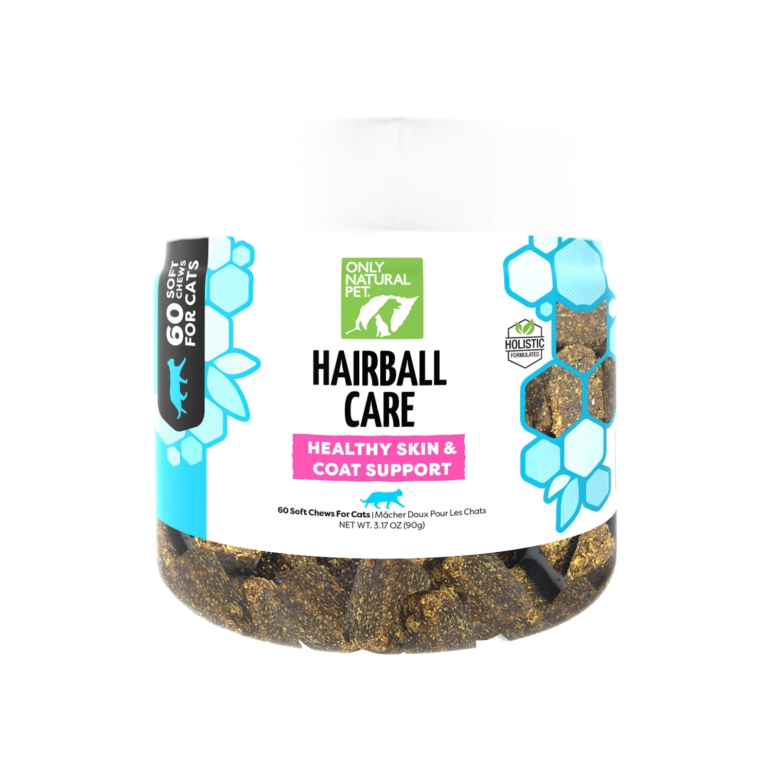 Only Natural Pet Hairball Care Healthy Skin & Coat Support Soft Chews for Cats are a healthy inclusion to your cat’s diet. These easy to administer soft chews offer healthy skin & coat support for your cat experiencing hairballs. This hairball treatment supplement takes a multi-pronged approach to dealing with hairballs.