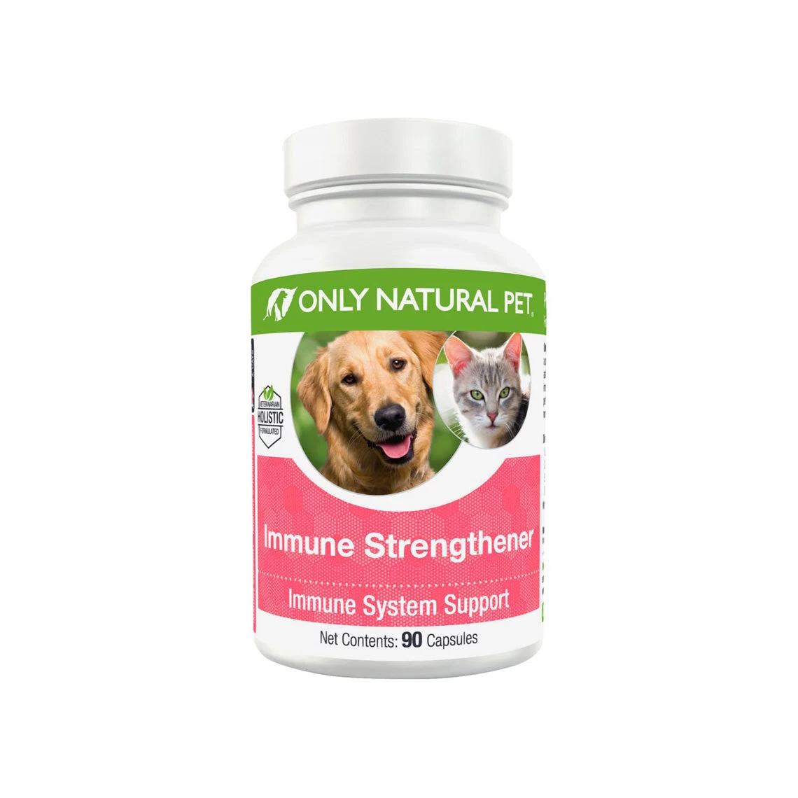 Only Natural Pet Immune Strengthener Support Supplement for Dogs & Cats provides a potent blend of natural vitamins, herbs, antioxidants, and mushrooms to help support essential immune health in pets and help maintain organ health for your pet. Veterinarian formulated, this powder-filled capsule is designed to help support your adult and senior dog or cat.