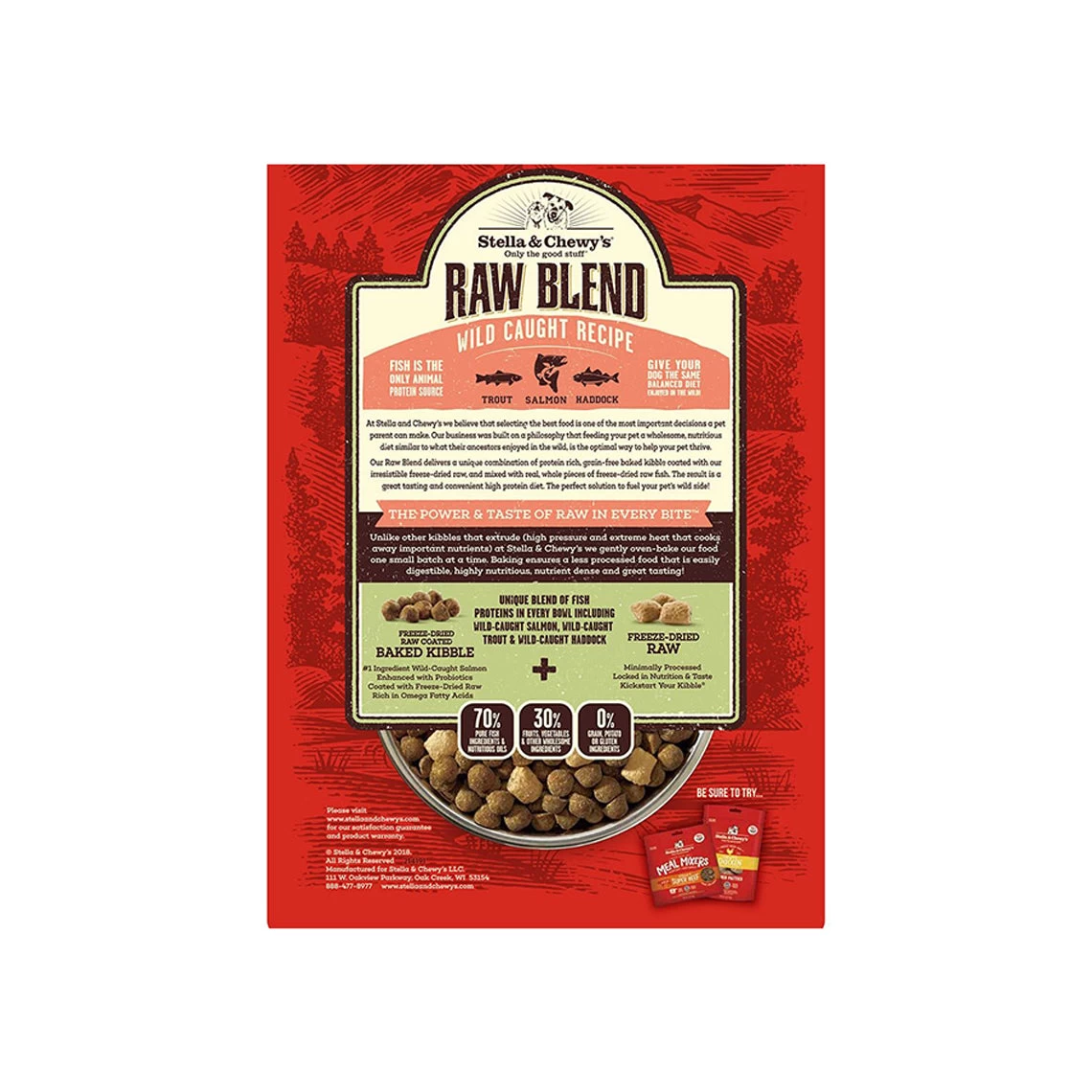 Stella & Chewy Raw Blend Dry Dog Food features a unique mix of freeze-dried raw coated kibble and raw inclusions throughout. Each formula is a mix of delicious responsibly sourced proteins.Â