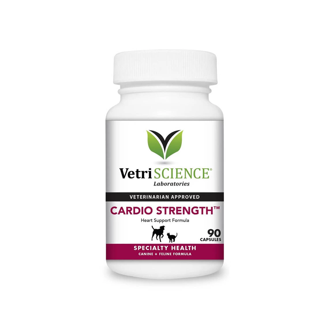 Vetri-Science Cardio Strength Canine + Feline Formula contains eleven ingredients that work synergistically, including L-taurine, L-carnitine, EPA and GLA, and vitamin E. All of these work together as a comprehensive formula that allows your pet to balance triglyceride and cholesterol levels and maintain electrolyte utilization.